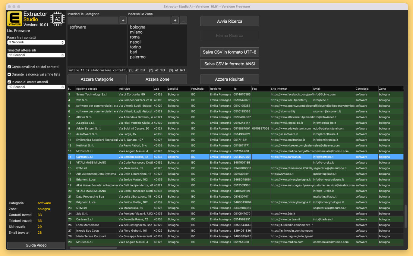 Extractor Studio is very simple to use, you provide the type and zone, and this software will search for all the results of browsing sites.